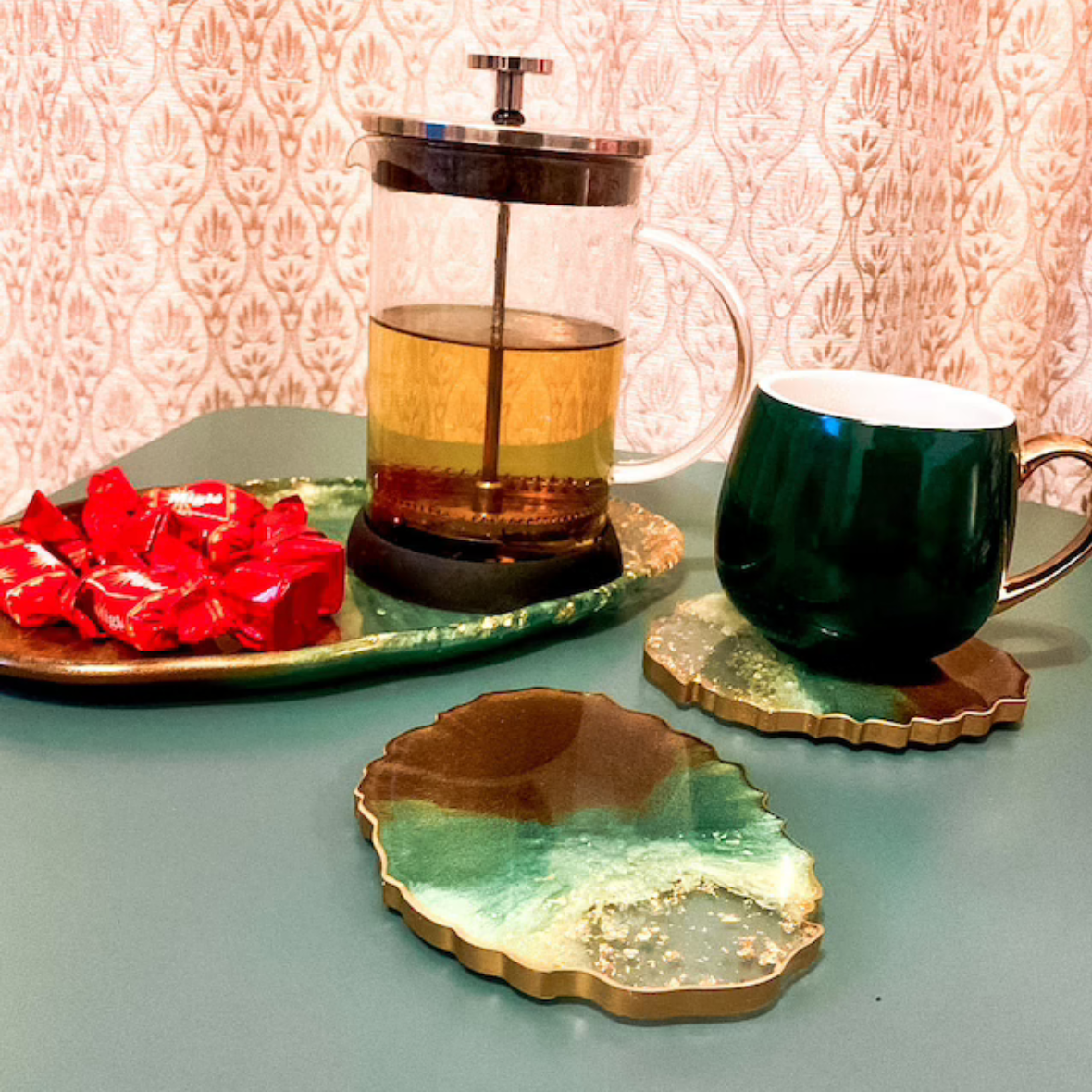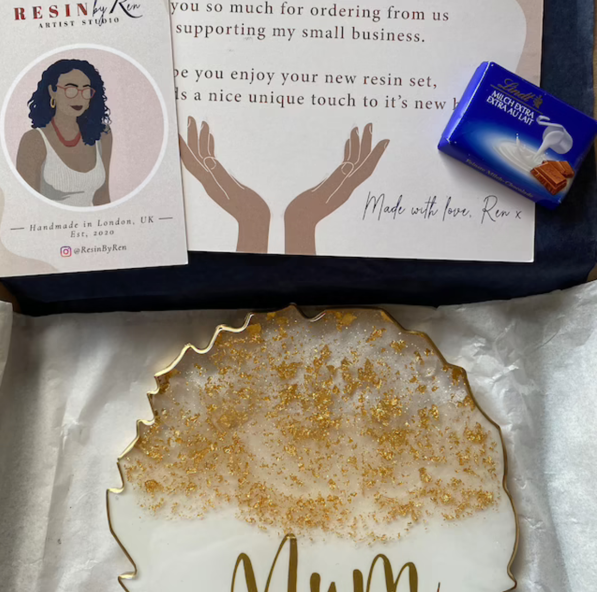 "Absolutely over the moon with my coaster I was able to personalise it to the colours I preferred and I was updated once my packing had been shipped and lovely customer service from a independent business. The resin coasters are very unique and definitely worth every penny"